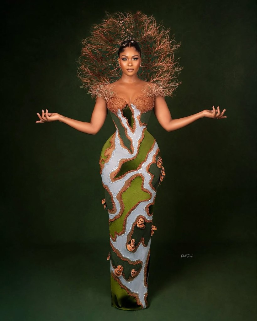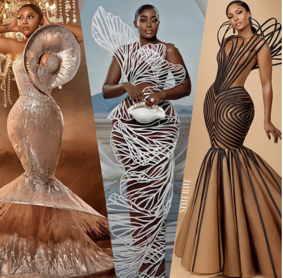 Her signature? Exaggerated silhouettes, precise corsetry, and unapologetic drama. Her gowns look like they were designed for modern-day African queens.